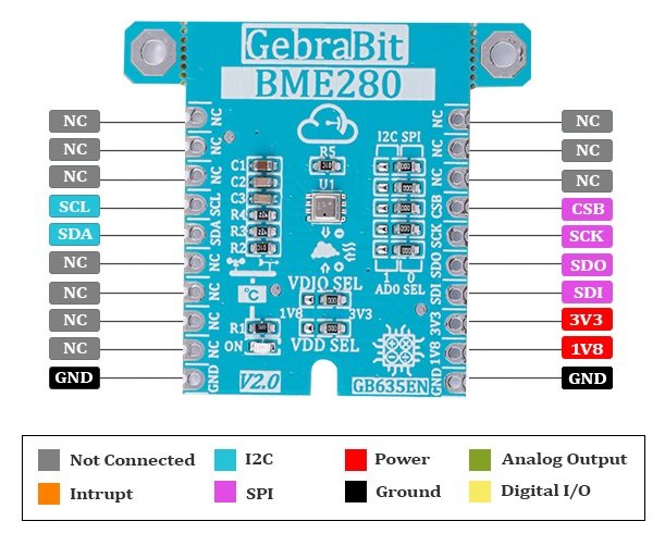 Pinout ماژول سنسور دما، رطوبت و فشار بارومتریک GebraBit BME280