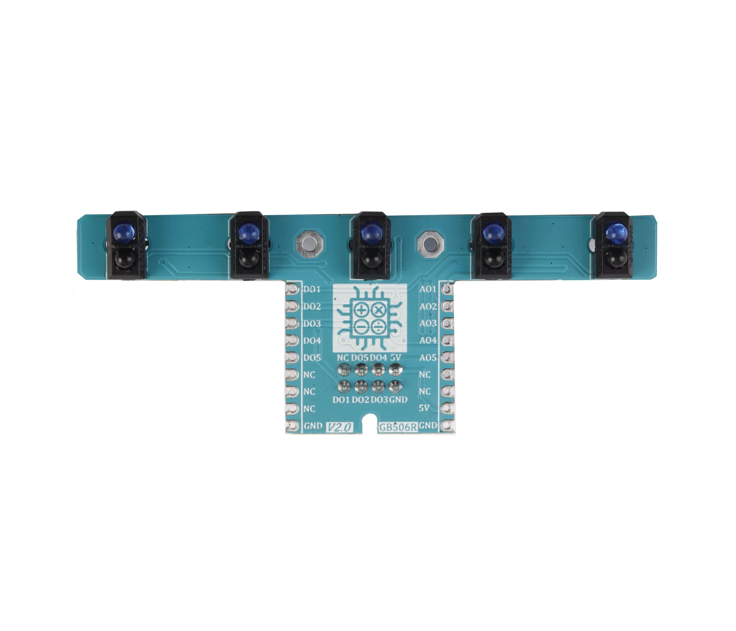 ماژول گیرنده فرستنده مادون قرمز پنج کاناله GebraBit TCRT5000-5 را می توان برای پروژه های رباتیک مانند تعقیب خط استفاده کرد. ماژول GebraBit TCRT5000-5 ماژول GebraBit TCRT5000-5 تنها با تغذیه 5 ولت راه اندازی میشود. خروجی ماژول GebraBit TCRT5000-5 به صورت ولتاژ آنالوگ و دیجیتال روی پین های “AO1” تا AO5، DO1 تا DO5 در دسترس است.